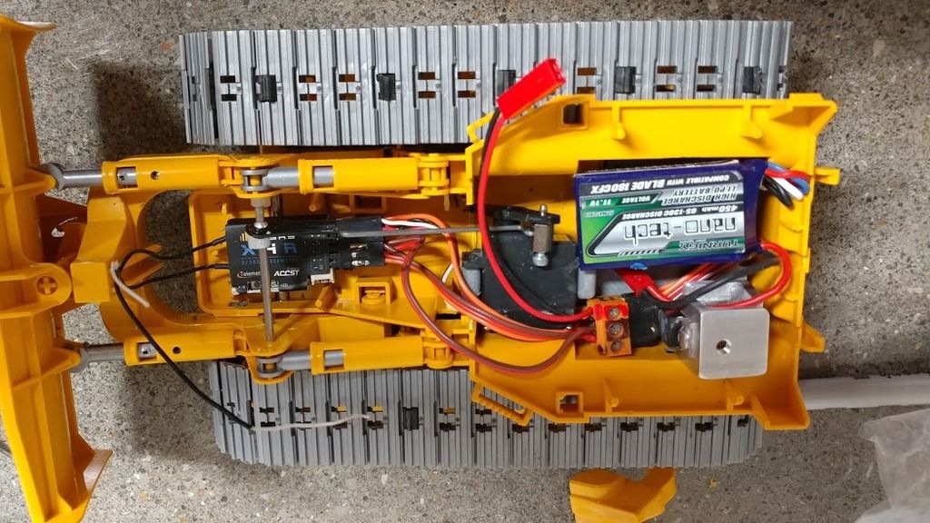 Hello, this is my first post here about my recent build.. I am interested in 3d printing and my search of the internet recently led to me to an article about an incredible 3d printed D10 cat that I found inspiring. I found this forum while searching around for R/C construction equipment something I was only vaguely aware of before from a couple of YouTube videos. I have been reading for the last couple of weeks trying to decide what to build first and it quickly became apparent that the ubiquitous Bruder conversion was he way to go for a first model. I picked up the little D5 last week and I have been working on it ever since. I have it driving now and I thought I would post some pictures of how I went about my conversion. I started out with the taymia gearbox like so many others but i quickly found out that the gears are essentially garbage and that it was way too fast and had too little torque for anything useful so I changed to some metal geared servos that were modified to allow for continuous rotation. It is all held together with some 3d printed parts for stability. I am still going to try to control blade angle with another servo I think. Pics to follow.