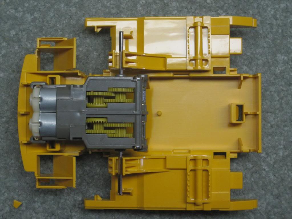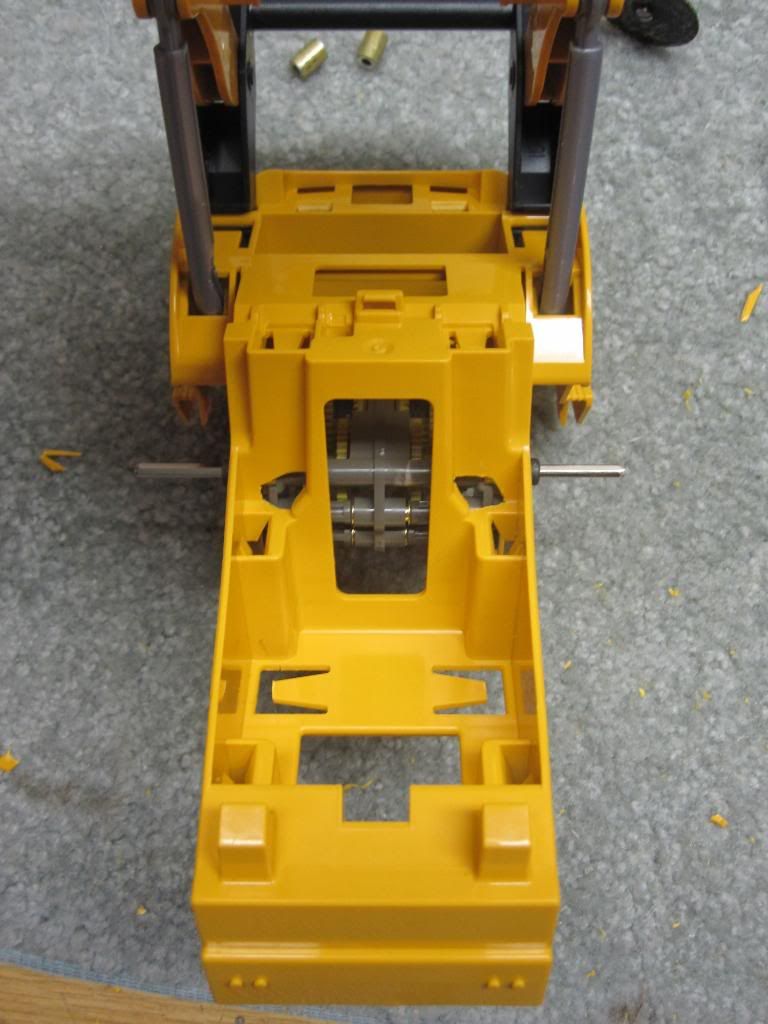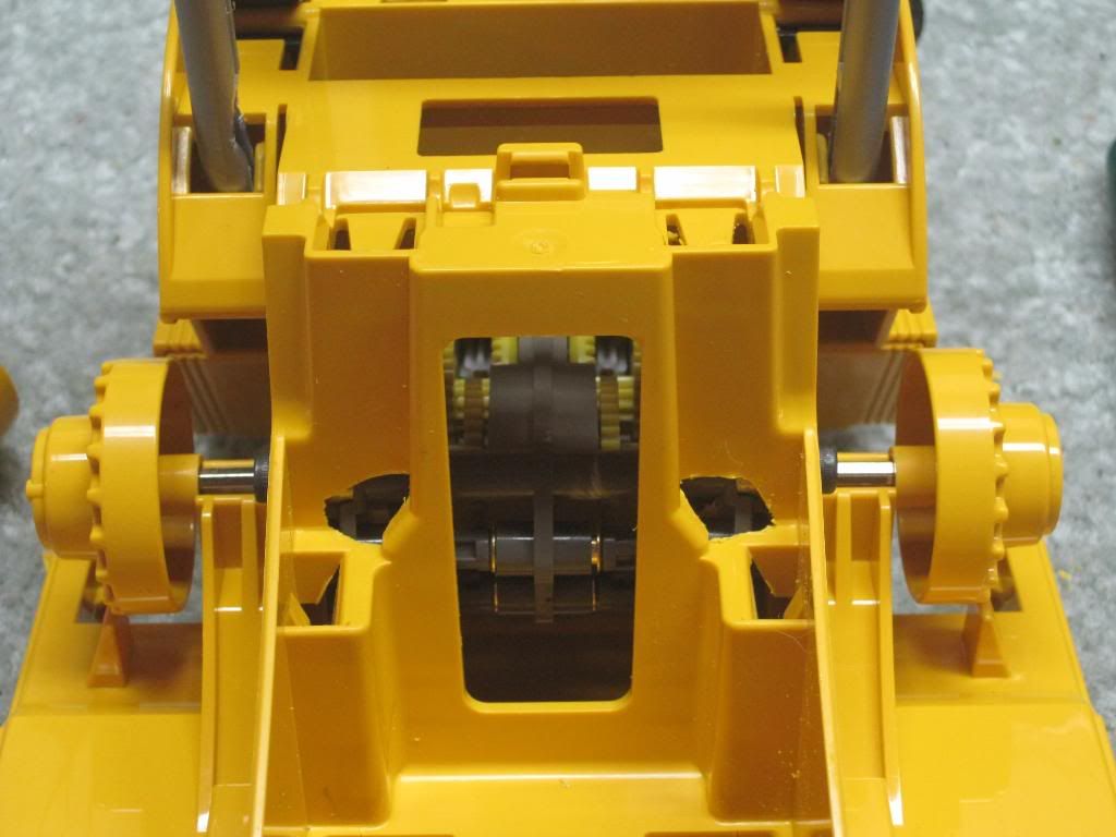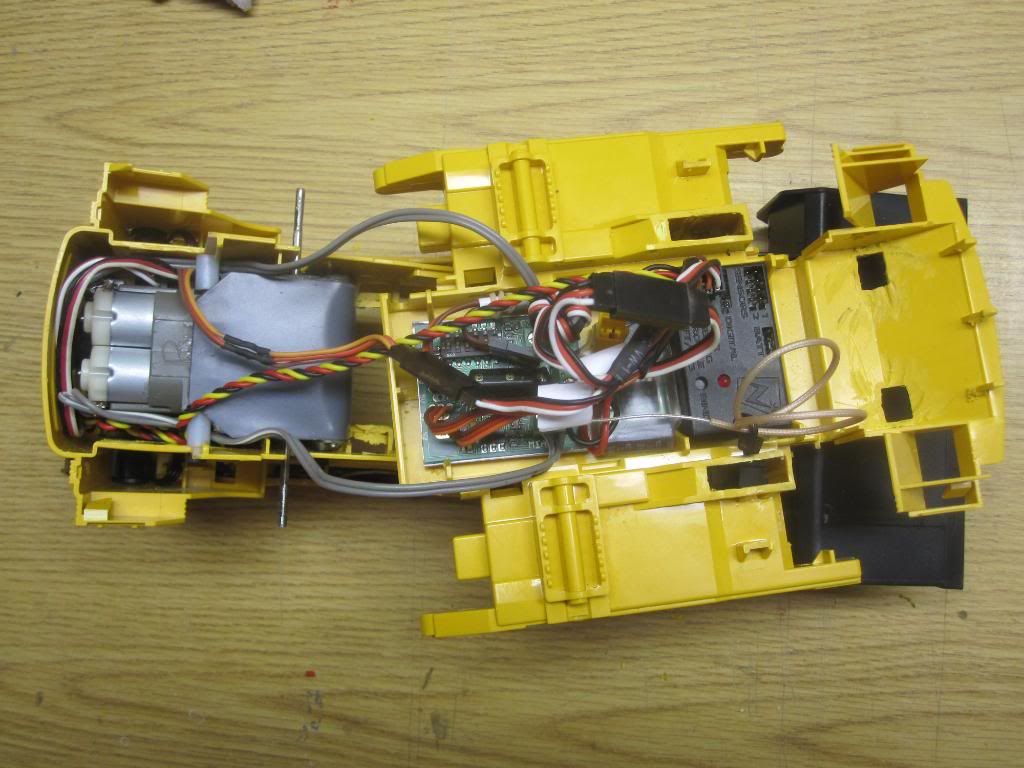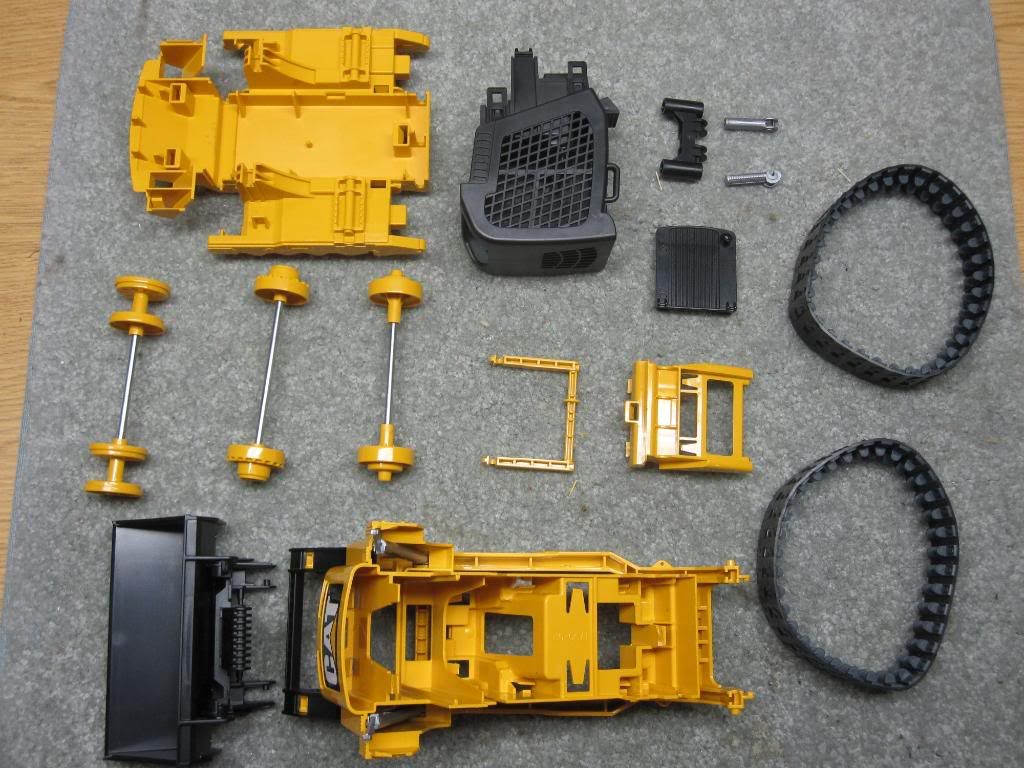 http://i240.photobucket.com/albums/f...4.jpg~original[/QUOTE] quoted for INFO below here, NOT for images Since I had to order more parts, I have a more accurate list: Radio system Tamiya twin motor gearbox shims for tamiya gearbox assembly (you loose about 10 to 20% of gear contact on some of them if you leave them sloppy) silicone to seal gearbox up (makes it last a very long time) 2 x slotcar motors (tamiya motors are 3.5 volts and fry quickly) Aluminum stock to make drive hubs 4-40 screws & washers to secure gearbox to chassis Saber tooth motor controller 5 volt 5 amp (continuous) bec Hitec Digital HS-7955 TG lift servo 2 x hitec hs-5065mg digital servos for bucket curl Hitec servo programmer 3" Y harness to join the 2 bucket curl servos 2 x 12" male servo leads to extend the bucket curl servos heat shrink for all of the bucket curl servo wiring piece of bicycle inner tube for lift lever cover (need to post pics) 4-40 rod and clevis for lift lever lead weight and 1 boat load of patience |